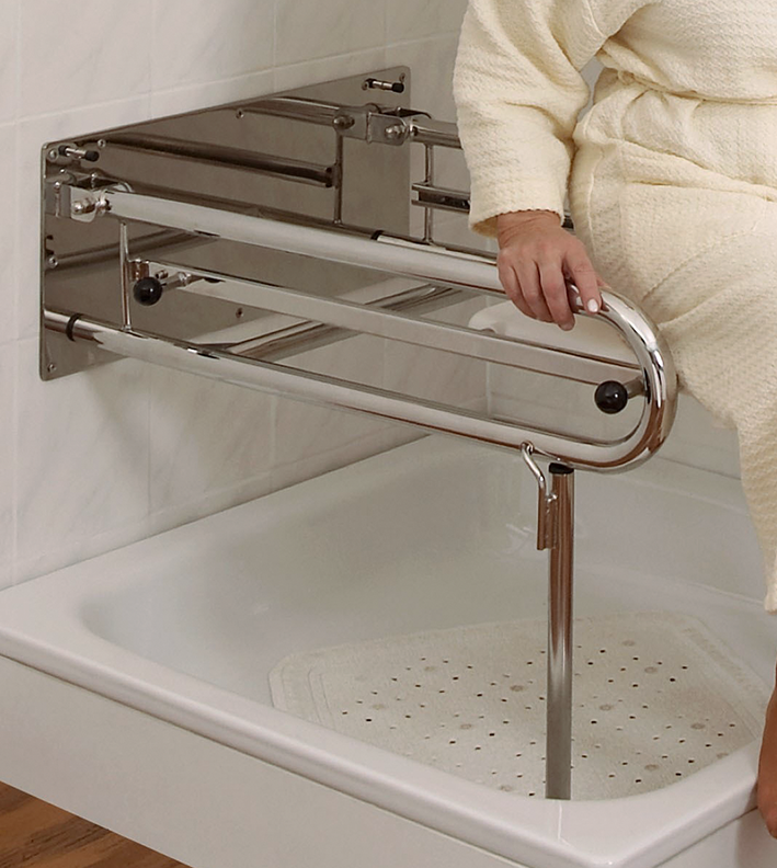 Der Duschrollsitz ermöglicht den einfachen Umbau einer Dusche mit Duschtasse zu einer barrierefreien Dusche. Der Patient setzt sich außerhalb der Dusche auf den Sitz und fährt darauf in die Dusche. Zwei Zugschnapper sichern die Position des Sitzes. Der komplette Duschrollsitz kann nach oben geklappt werden, sodass die Dusche auch zum Duschen im Stehen genutzt werden kann.