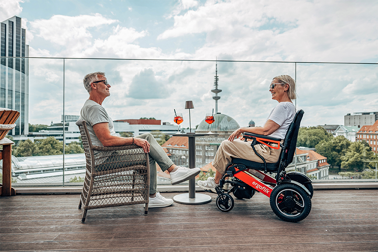 Unabhängig von Alter oder gesundheitlichen Einschränkungen – Immobilität kann verschiedene Ursachen haben. Mit den faltbaren E-Rollstühlen von ergoflix wird Selbstständigkeit großgeschrieben. Ob sich in den eigenen vier Wänden bewegen, Einkäufe eigenständig erledigen oder spontane Ausflüge mit Freunden unternehmen – die Produkte von ergoflix unterstützen dabei, die alltägliche Unabhängigkeit zurückzugewinnen. Mit nur einem Handgriff lassen sich die E-Rollstühle falten und somit kompakt verstauen.