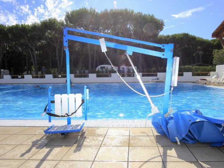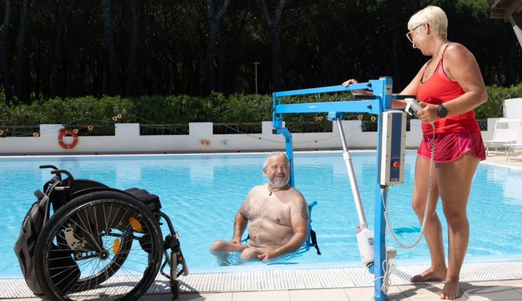 Der Pool ist mit einem Lifter ausgestattet und wird von qualifiziertem Personal betreut. Am Strand finden man bequeme Laufstege, um jeden einzelnen Strandplatz, mit Sonnenschirm ausgestattet, zu erreichen. Die Strandliegen sind erhöht um Rollstuhlfahrern das umsetzen zu erleichtern, gleiches gilt für die Anwendung mit den Strandrollstühlen.