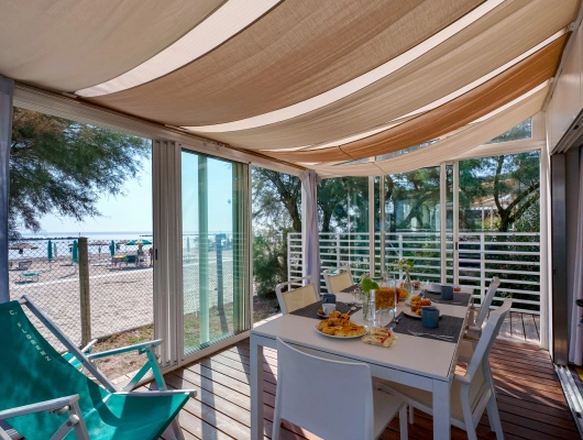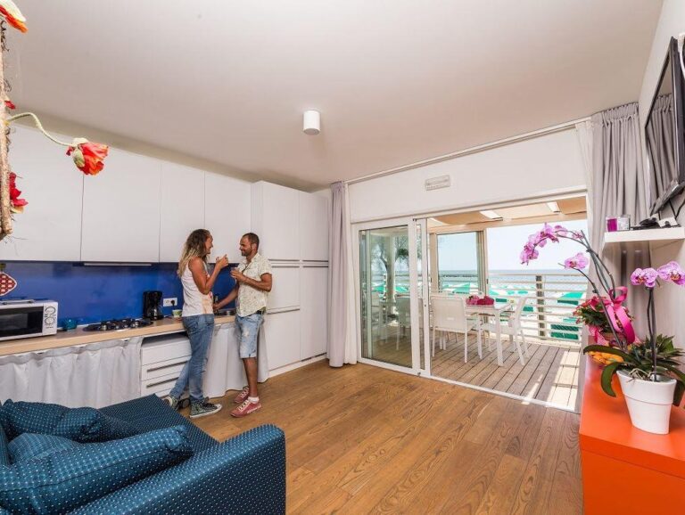 - Die Caravaggio Suite Holiday Homes, mit 50 qm für bis zu 5 Personen geeignet, repräsentieren die Exzellenz des Dorfes. Einige davon sind für Rollstuhlfahrer angedacht bzw. ausgestattet. Diese liegen direkt am Meer und wurden als Einzelstücke konzipiert. Die 50 qm großen luxuriöse Holiday Homes bieten eine geräumige Veranda und eine auf dem Dach liegende Sonnenterrasse, um den Meerblick von einer privilegierten Position aus zu genießen.