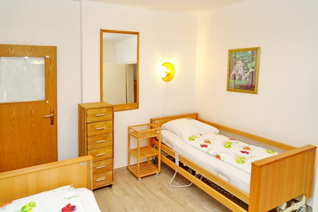 - Ein Schlafzimmer mit zwei zusammengestellten Pflegebetten