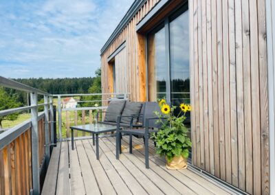 Empfangen werden die Gäste mit Ihrem hellen und rollstuhlgerechten Eingang. Die komplett neu renovierten Wohnungen bieten mit 151 qm Platz für bis zu acht Personen. Durch die wunderschöne Waldrandlage kann man die umliegende Schwarzwald-Kulisse mit wunderschönen Ausblicken vom Balkon aus genießen.