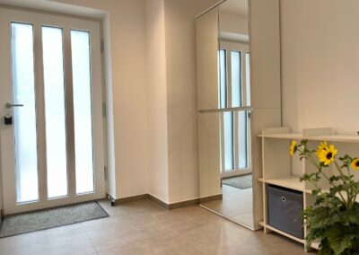 - Die lichte Weite der Eingangstüre beträgt bei Wohnung „Westweg“ 85 cm, bei der Wohnung „Ostweg“ 80 cm